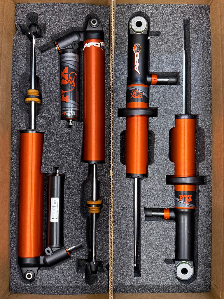 The shocks provided may show signs of wear such as chips, scrapes, scuffs, or peppering however are in 100% working order. The shocks are shipped without springs, top hats, and shock guards requiring the customer to reuse these from their own shocks before shipping to APO.